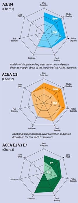 L’organo di rappresentanza per tutte le principali case automobilistiche europee (ACEA) ha introdotto una nuova serie di norme e di classificazioni. Tutti i produttori che richiedono specifiche ACEA possono ottenerle solo se approvate per legge.