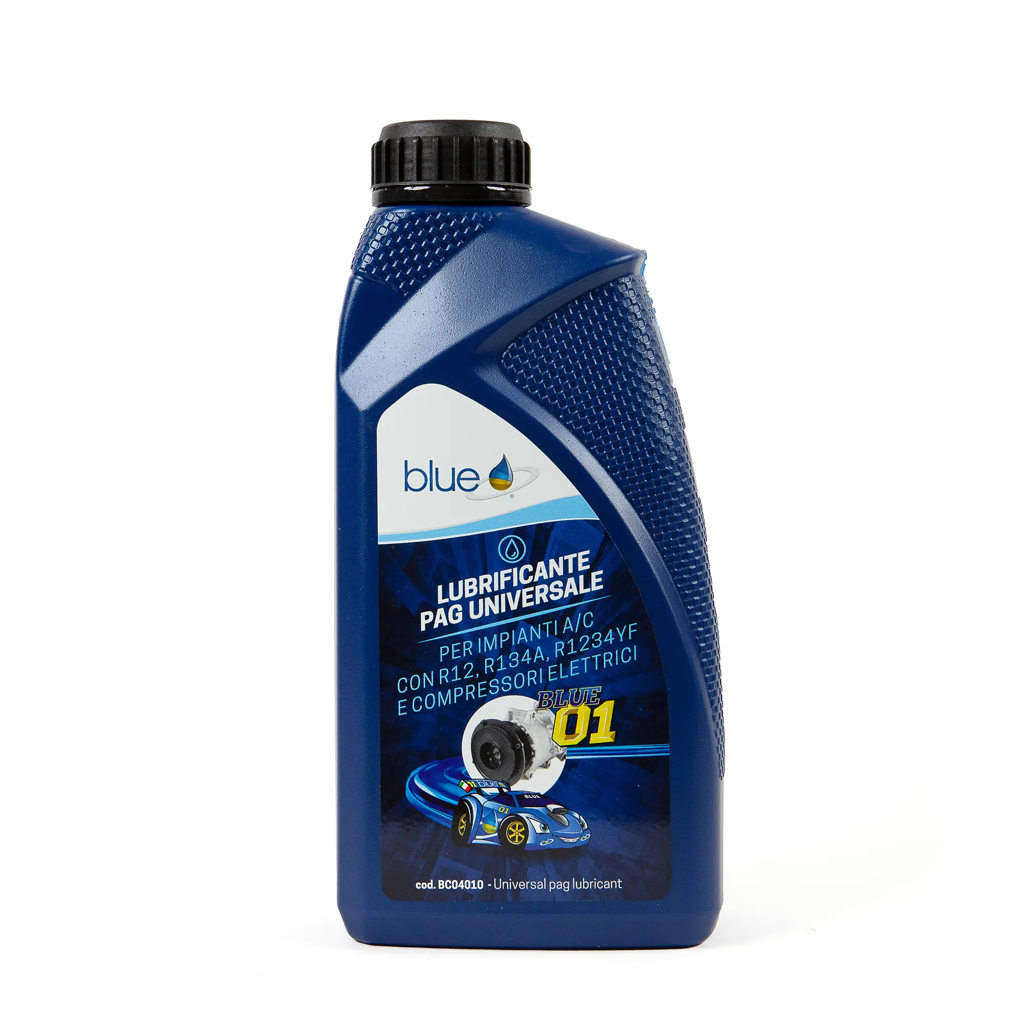 Lubrificante universale miscelabile con ogni altro tipo di olio PAG usato all’origine. Composto da una miscela di polialchilenglicolici e additivi appositamente formulati per poter esser utilizzato su impianti contenenti GAS R12, R134a, R1234yf e compressori elettrici. Utilizzabile da tutte le officine per le operazioni di ricarica e manutenzione.