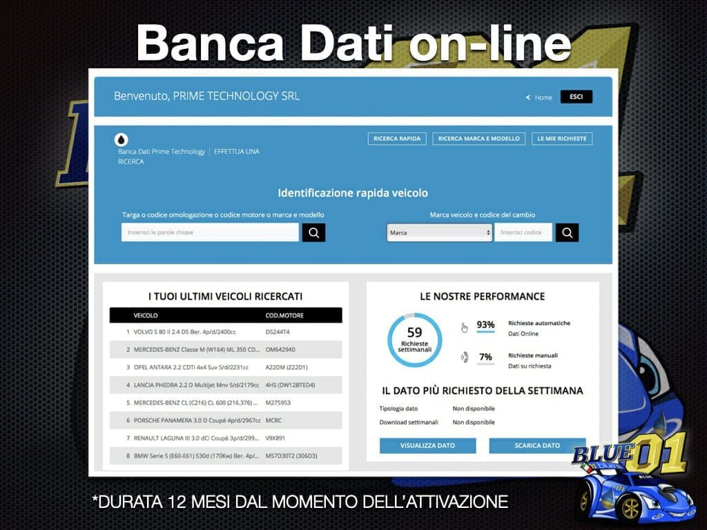 La Banca Dati nasce dall’esperienza dei Tecnici Prime Technology con la collaborazione di un’azienda internazionale che si occupa di servizi per il settore Automotive. La banca dati contiene: